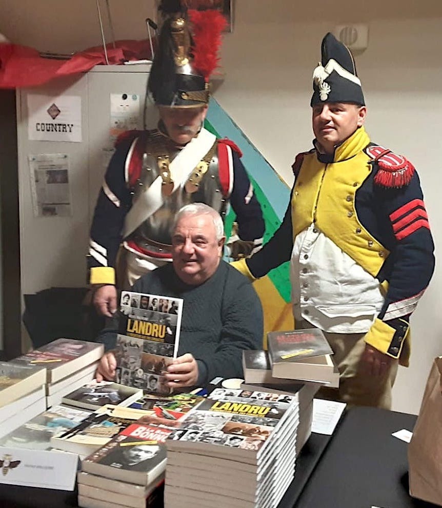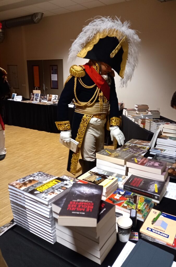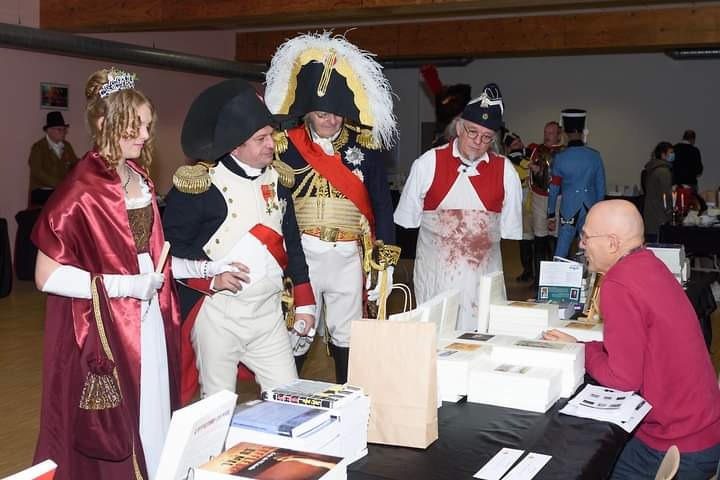 Avez-vous dédicacé vos ouvrages, en l’an de grâce 2022, sous la garde de magnifiques soldats du Premier Empire ? Nous avons personnellement vécu cette expérience avec la sensation étrange de vivre dans un autre siècle ! D’autant que l’Empereur est venu en personne converser un petit moment avec nous. Nous avons même reçu sur notre stand la visite du maréchal Davoust, un personnage haut en couleur, dans tous les sens du terme !