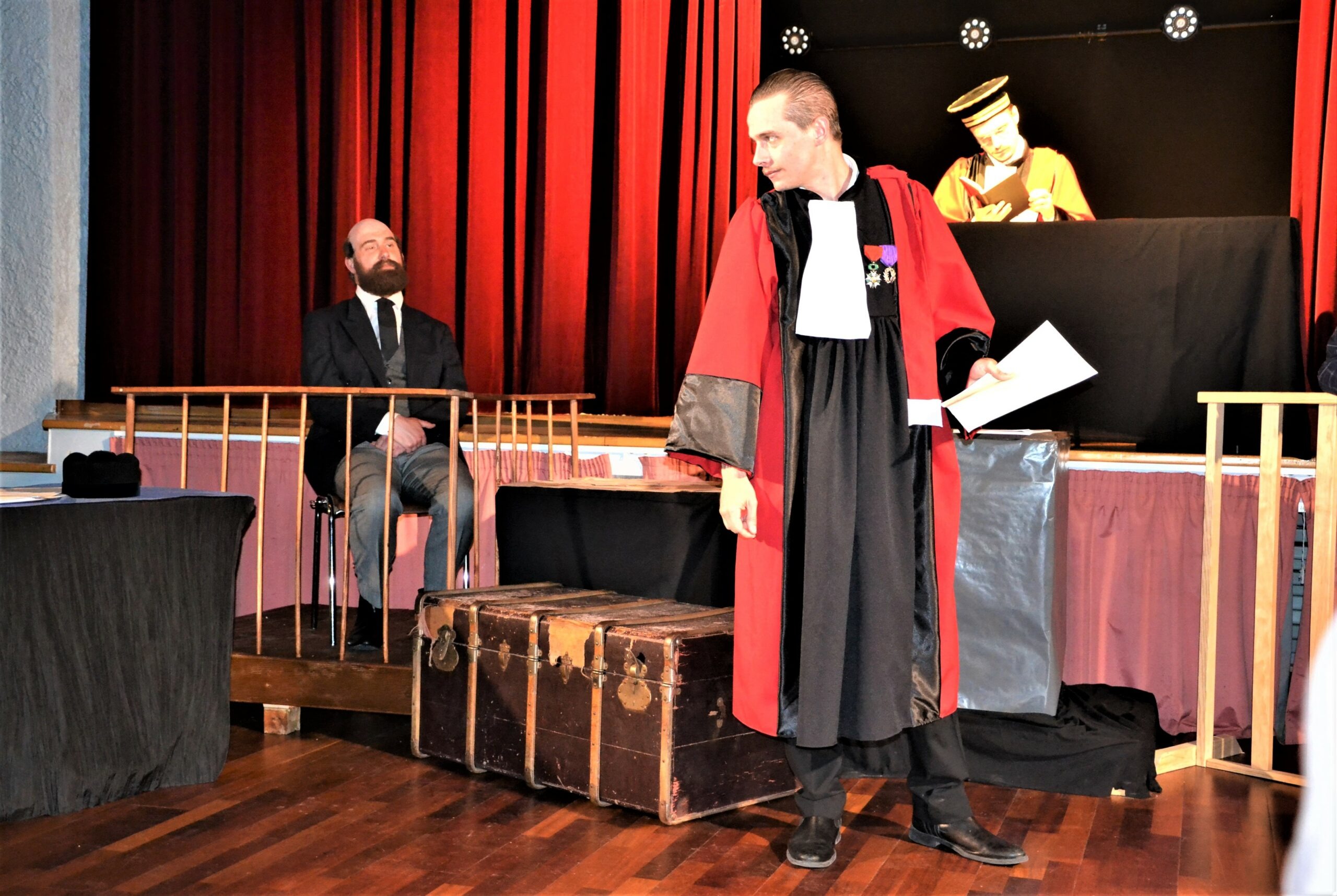 A l’initiative de la municipalité, se déroulait une reprise du célèbre procès de Versailles. Pour mémoire. Le 30 novembre 1921, Henri-Désiré Landru, accusé de onze homicides volontaires (10 femmes et un jeune homme) sera condamné à la peine capitale et exécuté à Versailles, le 25 février suivant. Un prétoire très original, cette fois, puisque la salle du foyer municipal de Gambais était transformé en lieu de justice. Comme ce fut jadis le cas, lors du procès original, cette représentation théâtrale, menée de main de maître par cette petite troupe artistique talentueuse, a attiré un très nombreux public. Elément surprenant, malgré le côté un peu « gore » de cette affaire, maintenant centenaire, ce public comptait en ses rangs beaucoup de jeunes gens et de femmes. De même, le public était si nombreux que les organisateurs durent refuser des entrées et prévoir pour le lendemain après-midi une représentation supplémentaire ! Encore moins courant de nos jours, le prix de ce spectacle n’était pas fixé. Il se faisait sur la base d’une participation libre. Le public pouvait donner, en fin de représentation, ce qu’il voulait ou pouvait, en fonction de ses moyens. De fait, la salle était accessible à tous !