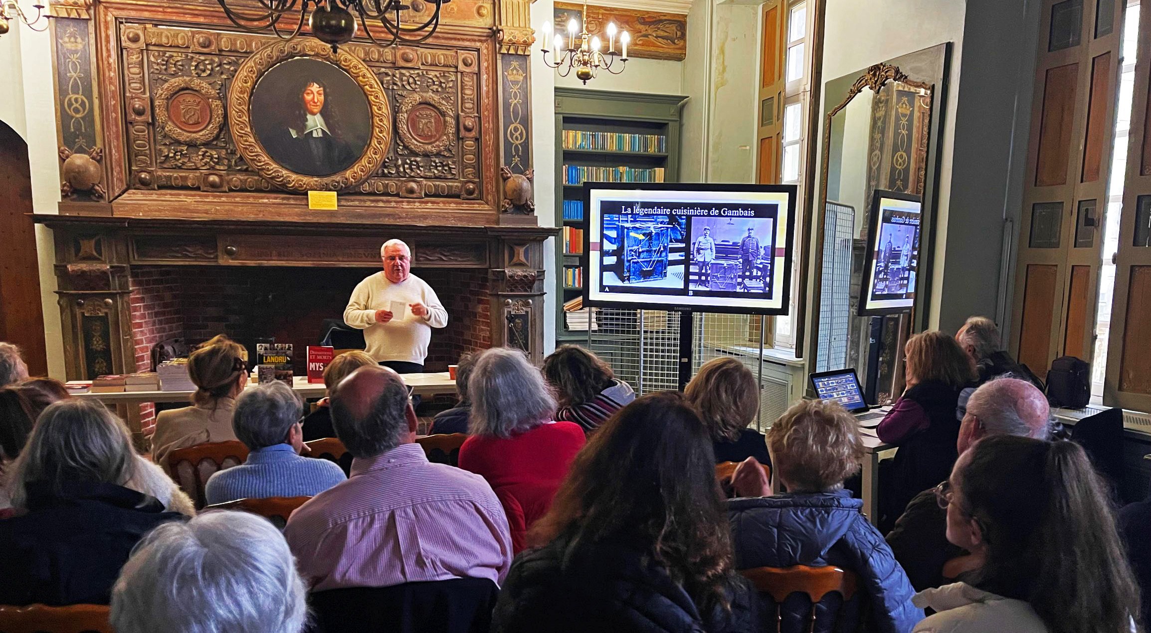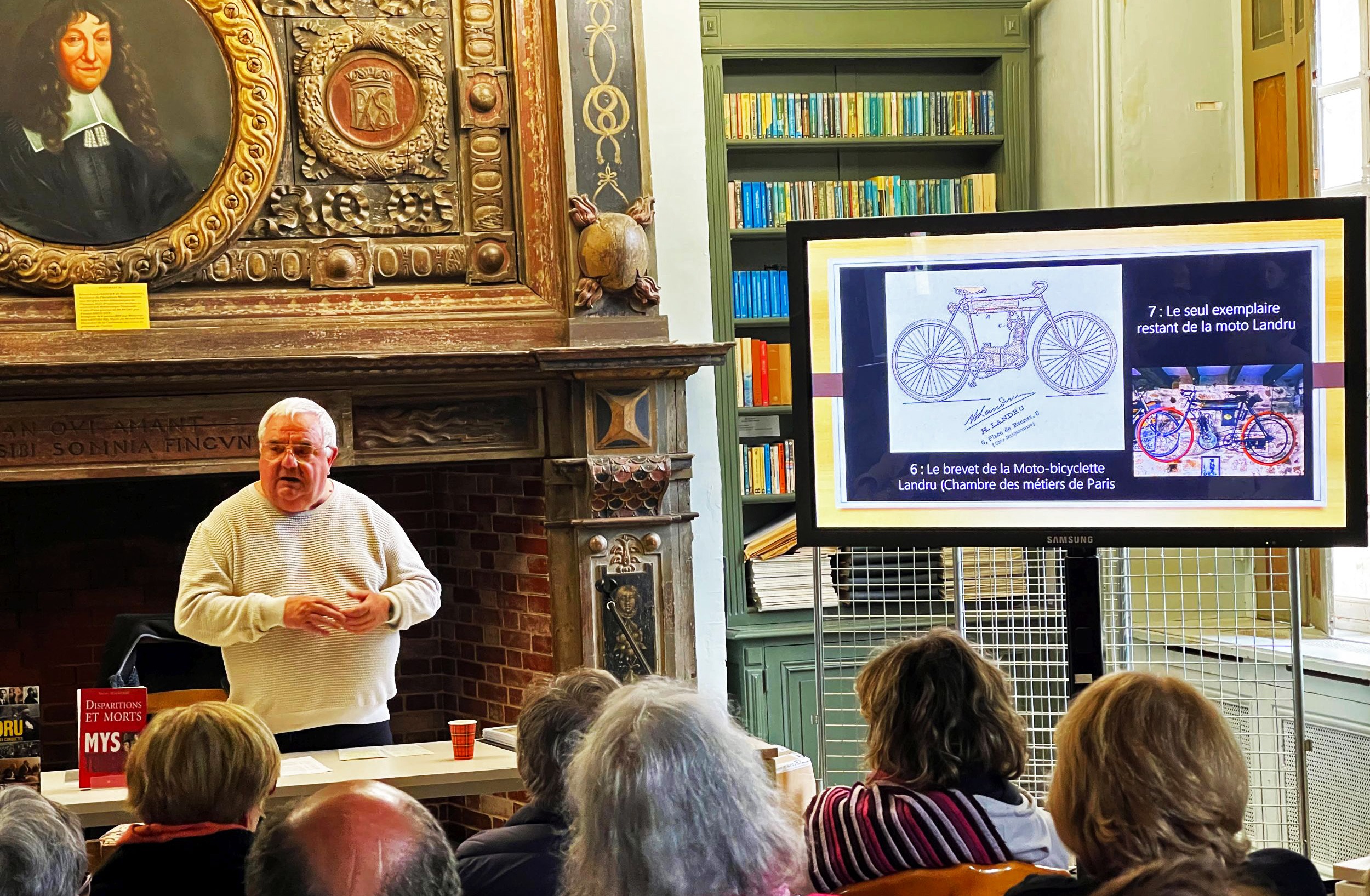 Quel cadre magnifique que ce château-mairie ! Un lieu de rêve pour tenir une conférence ayant pour thème l’affaire Landru. D’autant que la grande salle de bibliothèque mise à disposition était dotée d’une superbe cheminée d’époque. Une œuvre d’art apte à faire rêver le « vilain barbu », lequel aurait certainement fait pâle figure avec sa minuscule cuisinière à charbon !