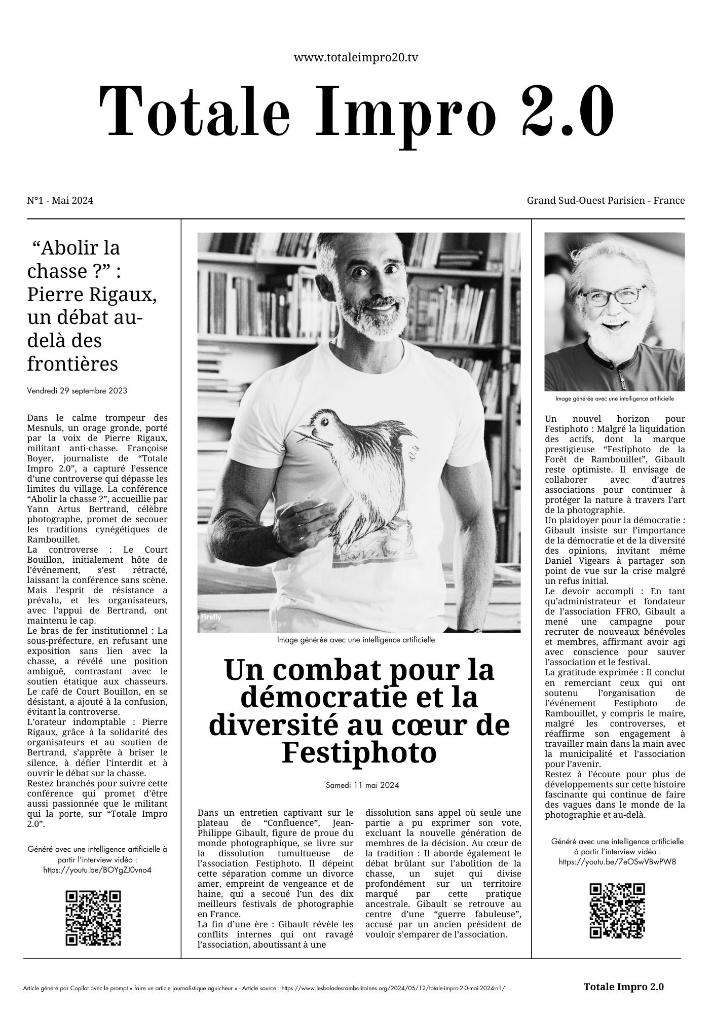 ♨️ Dans le calme trompeur des Mesnuls, un orage gronde, porté par la voix de Pierre Rigaux, militant anti-chasse. Françoise Boyer, journaliste de “Totale Impro 2.0”, a capturé l’essence d’une controverse qui dépasse les limites du village. La conférence “Abolir la chasse ?”, accueillie par Yann Artus Bertrand, célèbre photographe, promet de secouer les traditions cynégétiques de Rambouillet.