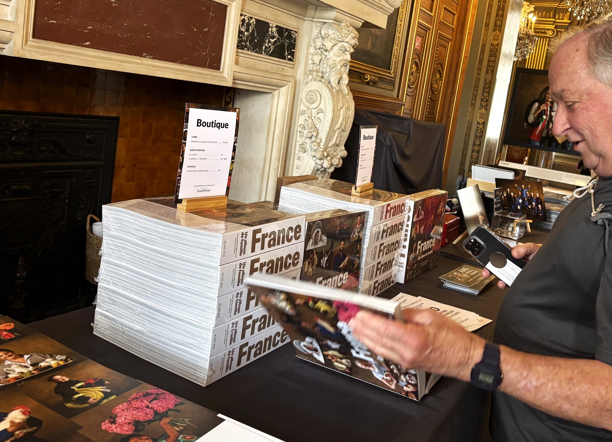 Dans un cadre magnifique, vous trouverez des photos de personnes solidaires à l’hôpital, d’une bande d’amies, de personnes qui s’occupent des voiries, de producteurs de légumes et fruits bio, d’un joyeux groupe d’enfants etc. Tout ce qui représente la France dans son dynamisme et son esprit positif. Sur place, vous pourrez acquérir également le livre de Yann Arthus-Bertrand sur la France et ce dernier est souvent sur place dans un studio pour photographier les gens.
