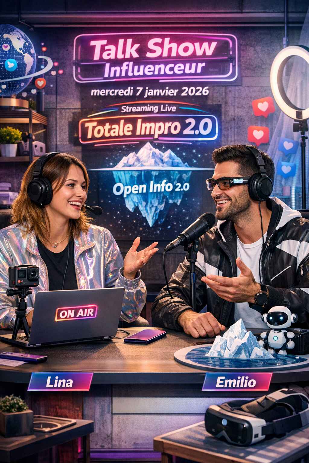 2️⃣ [Playlist] Talk Show Influenceur du 07/01/2026 – Ne manquez rien > regardez l’émission en entier : https://www.totaleimpro20.tv/video/%f0%9f%94%b4-live-talk-show-influenceur-du-mer-7-01-2026-totale-impro-2-0-grand-sud-ouest-parisien/