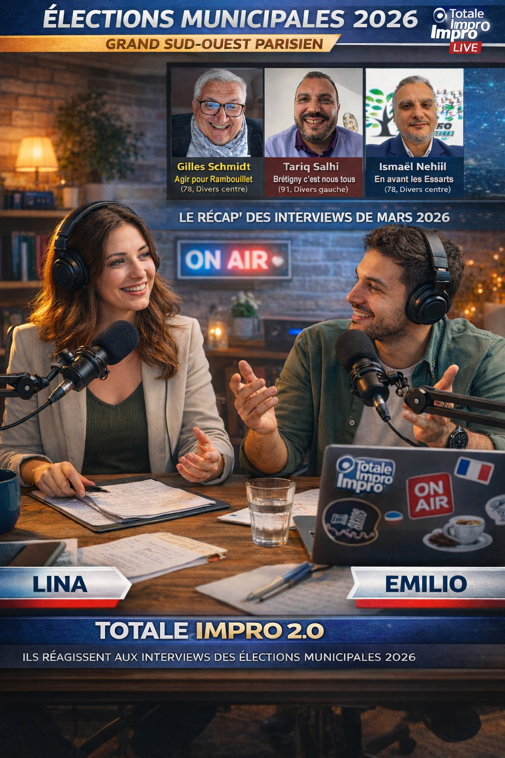 🎭🎙️📡 Revivez les interviews de Gilles Schmidt, de Tariq Salhi et d’Ismaël Nehlil – Elections Municipales 2026 sur Totale Impro 2.0 – récap’ et le live complet, dispo dès maintenant !